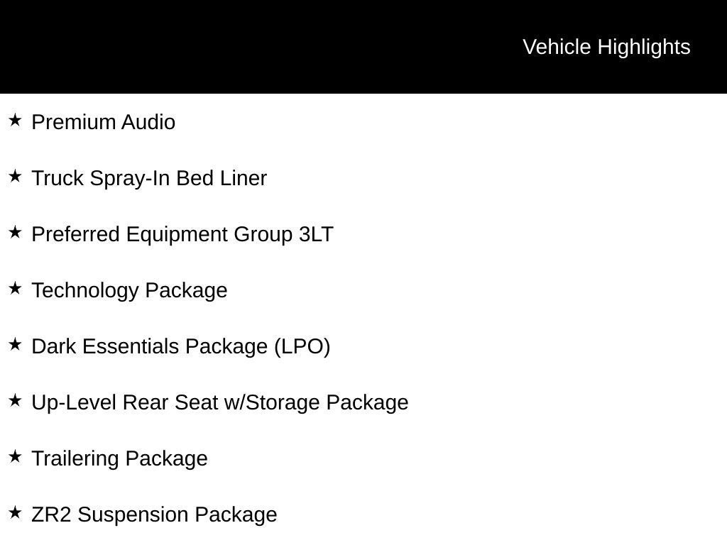 This Silverado ZR2 is packed with advanced technology to enhance your driving experience, including Apple CarPlay, Android Auto, Wi-Fi hotspot capability, and an integrated trailer brake controller. With its impressive off-road capabilities, premium features, and exceptional utility, this Silverado ZR2 is the ultimate choice for those seeking a versatile and capable truck.